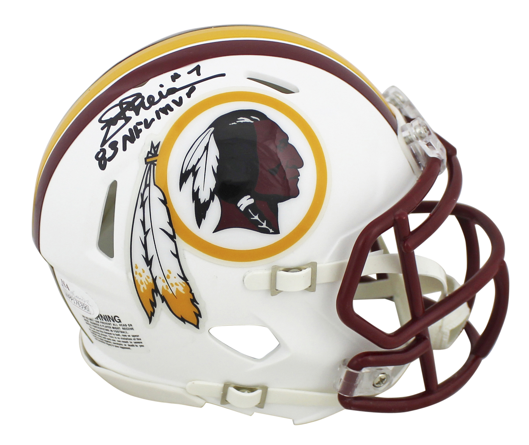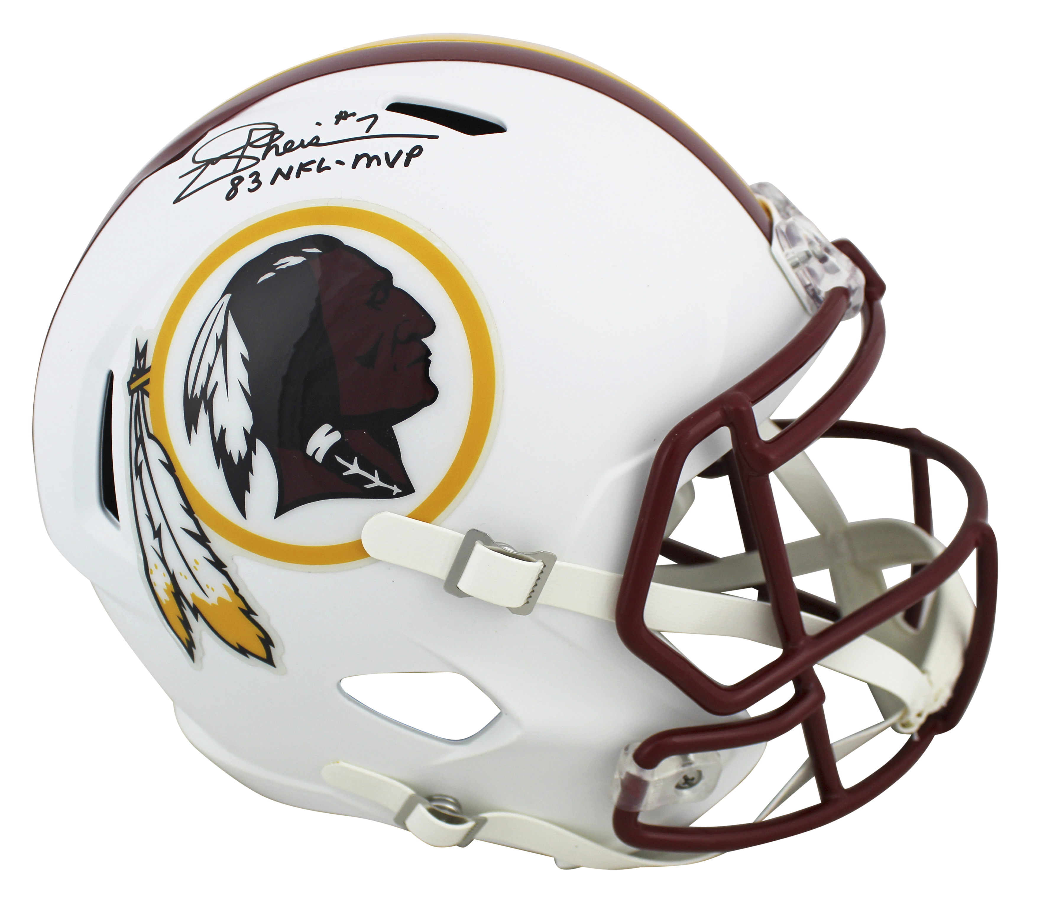 Redskins Joe Theismann "83 NFL MVP" Signed Flat White F/S Speed Rep Helmet JSA