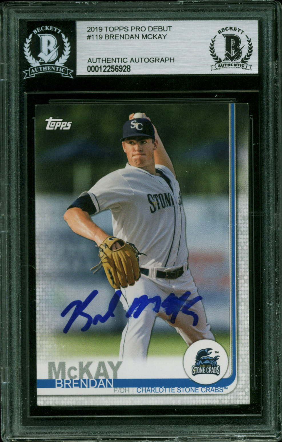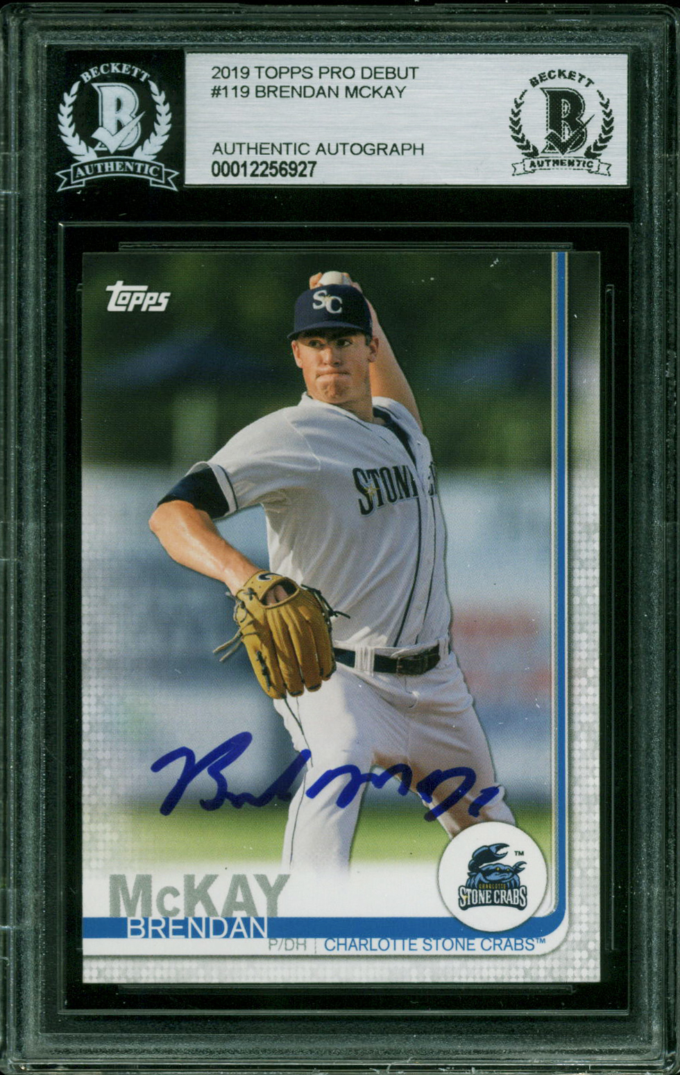 Rays Brendan McKay Signed 2019 Topps Pro Debut #119 RC Card BAS Slabbed 12256928