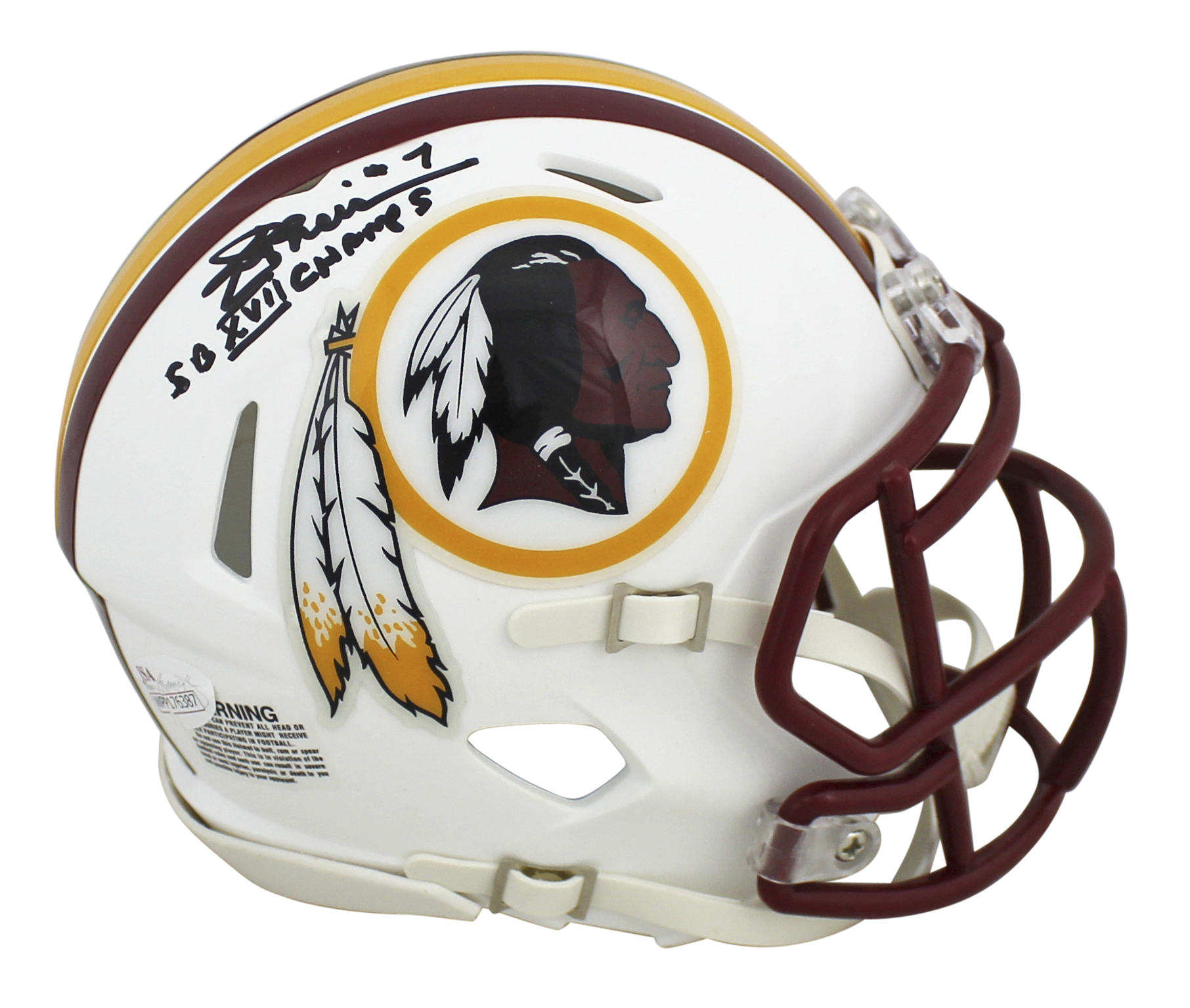 Redskins Joe Theismann SB XVII Champ Signed Flat White Speed Mini Helmet JSA Wit