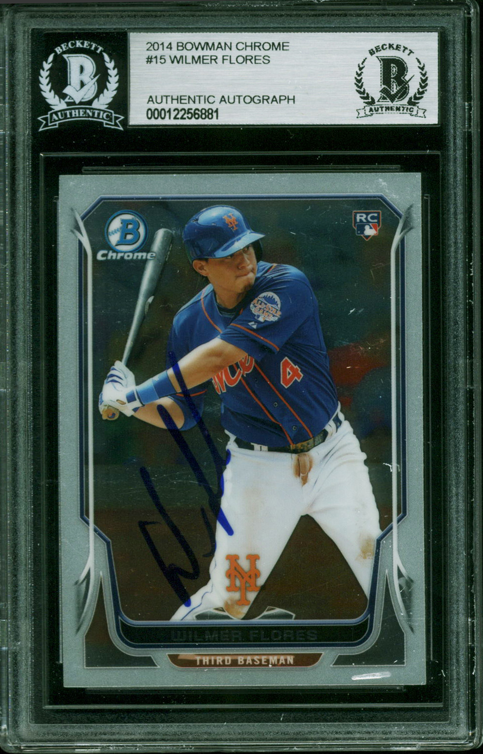 Mets Wilmer Flores Authentic Signed 2014 Bowman Chrome #15 Card BAS Slabbed