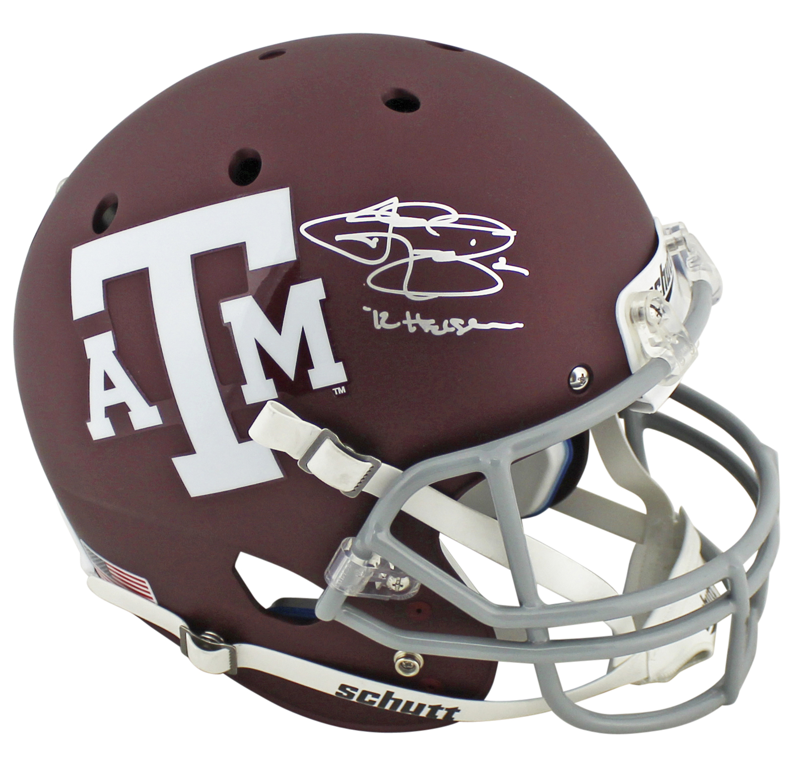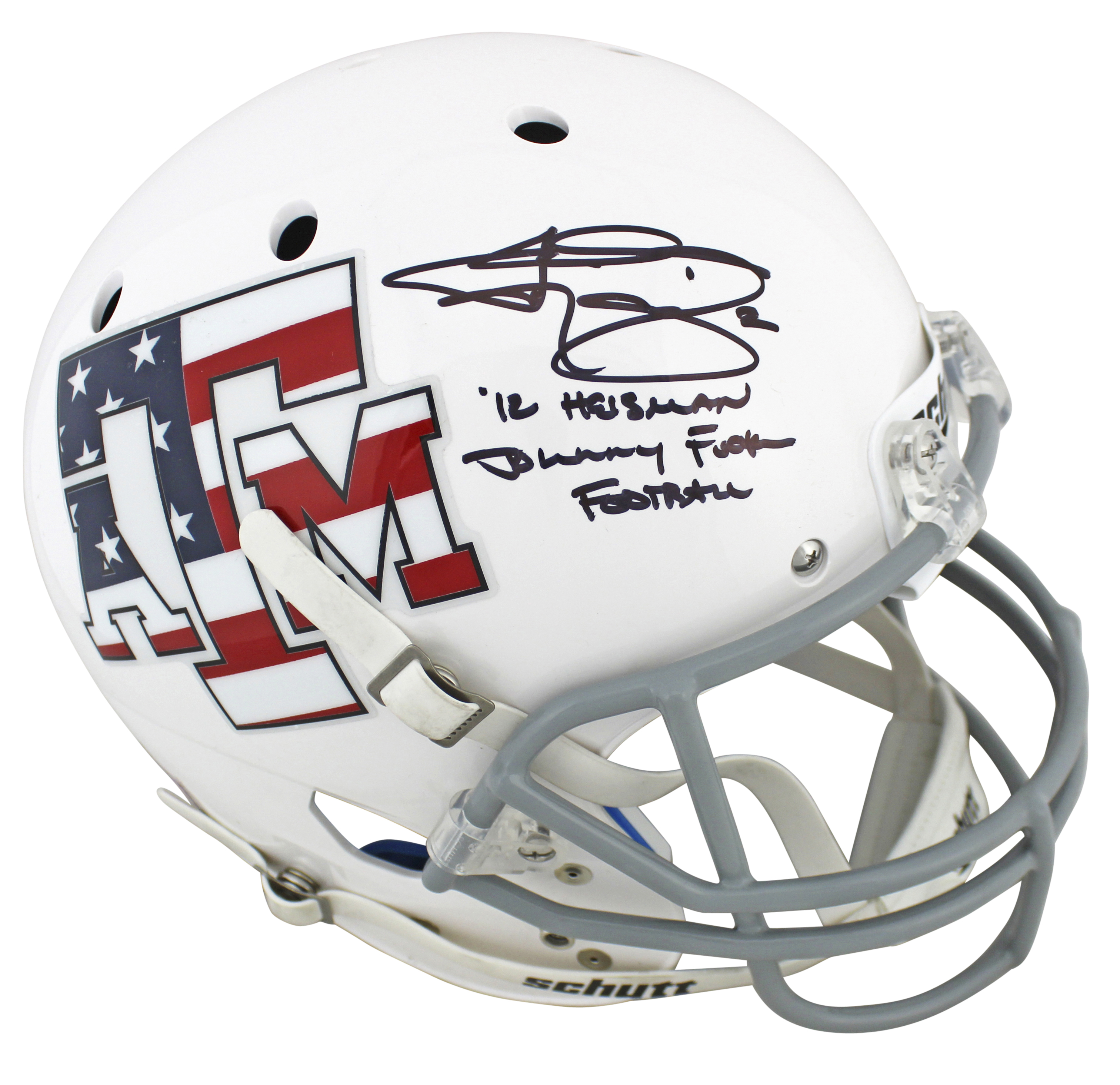 Texas A&M Johnny Manziel 2x Insc. Signed White Schutt Full Size Rep Helmet JSA