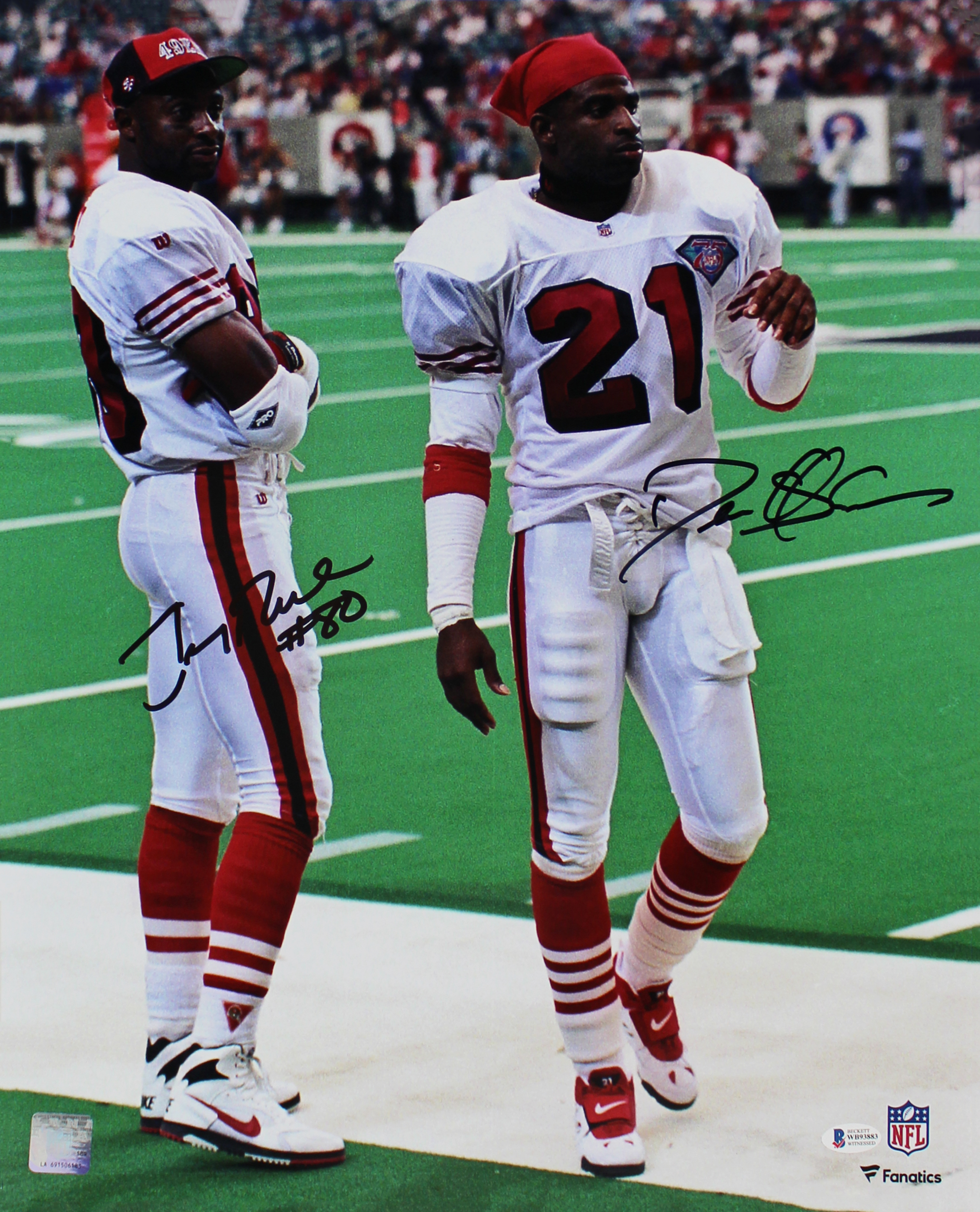 49ers Deion Sanders & Jerry Rice Signed 16x20 Vertical Photo BAS Witnessed