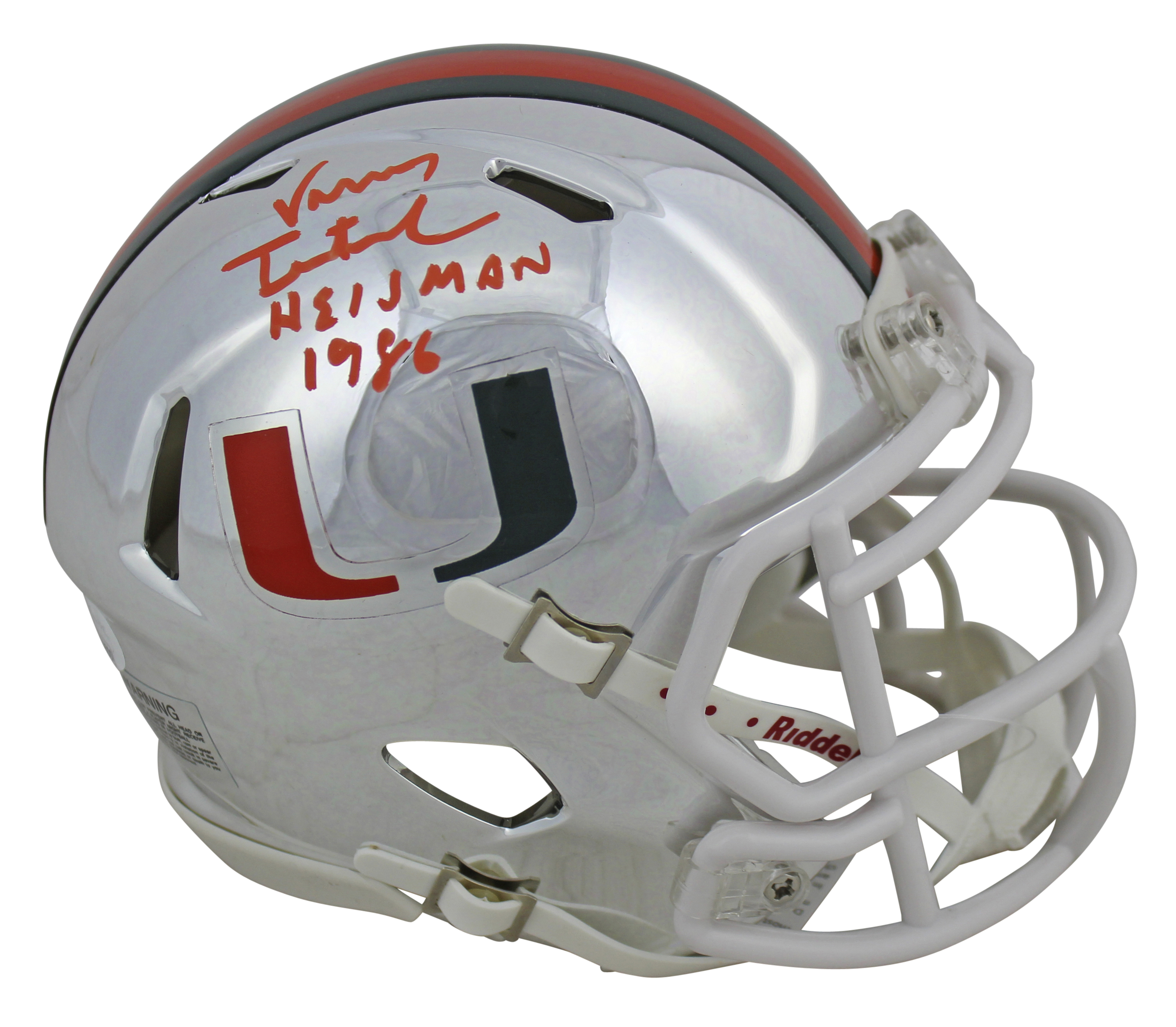 Miami Vinny Testaverde "HT '86" Signed Chrome Speed Mini Helmet JSA Witness