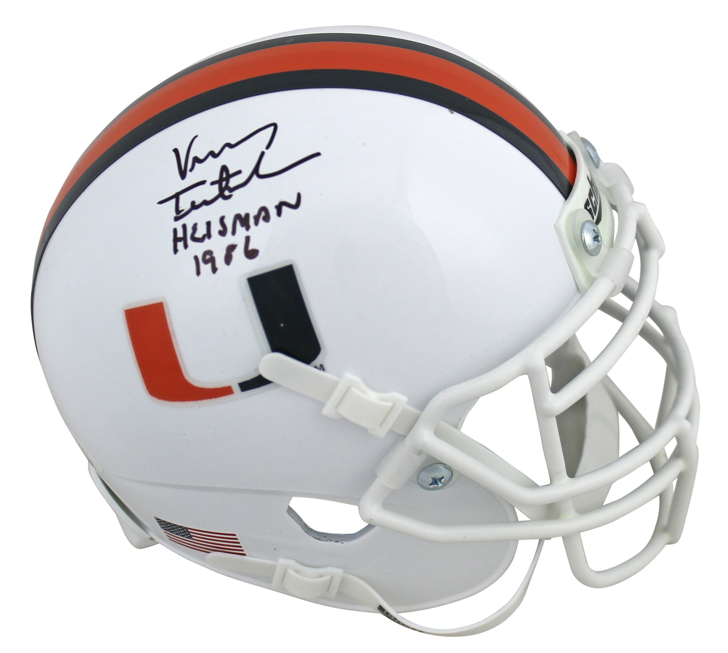 Miami Vinny Testaverde HT '86 Signed White Schutt w/ Chrome Logo Mini Helmet JSA