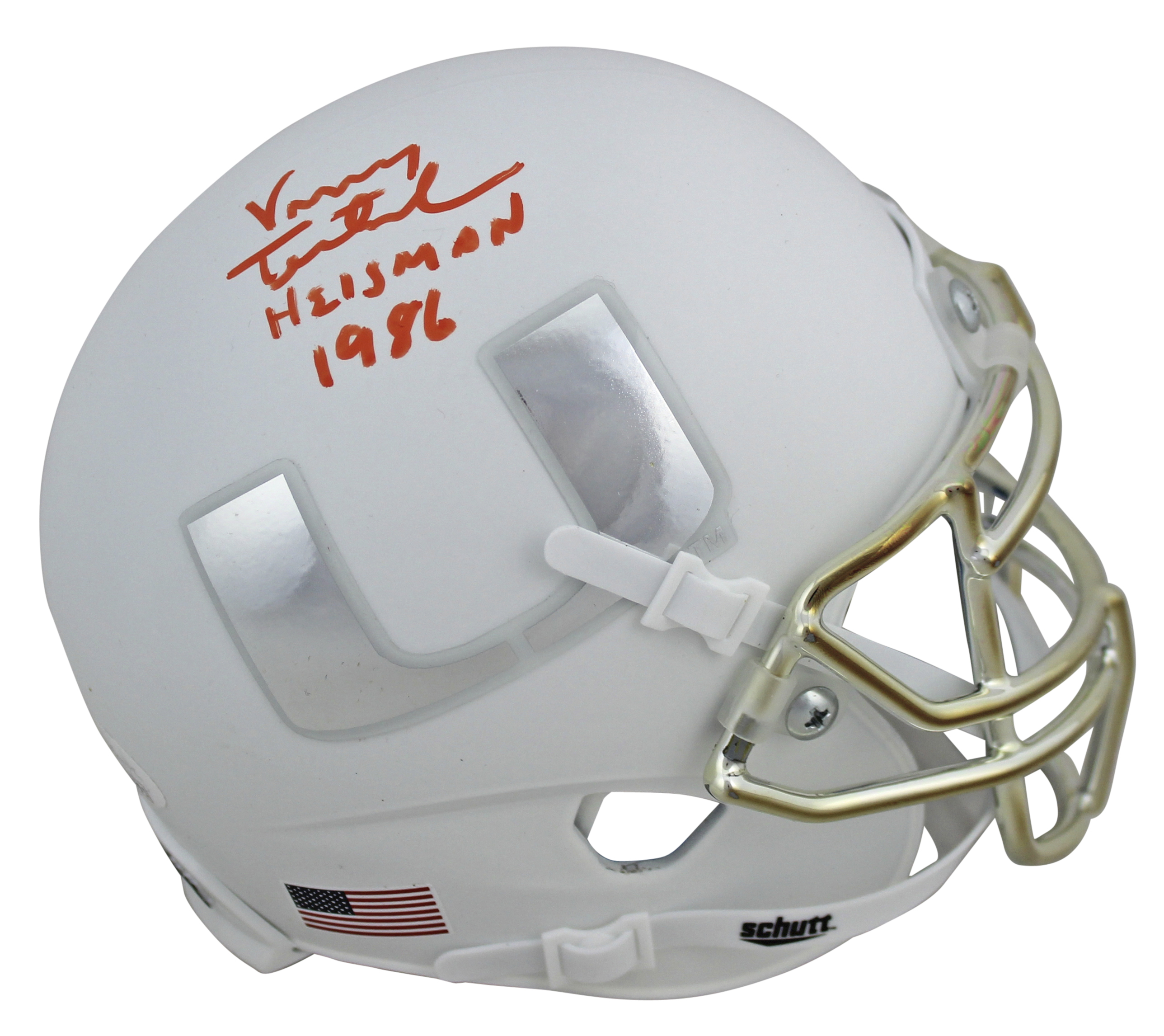 Miami Vinny Testaverde "HT '86" Signed White Schutt Mini Helmet JSA Witness