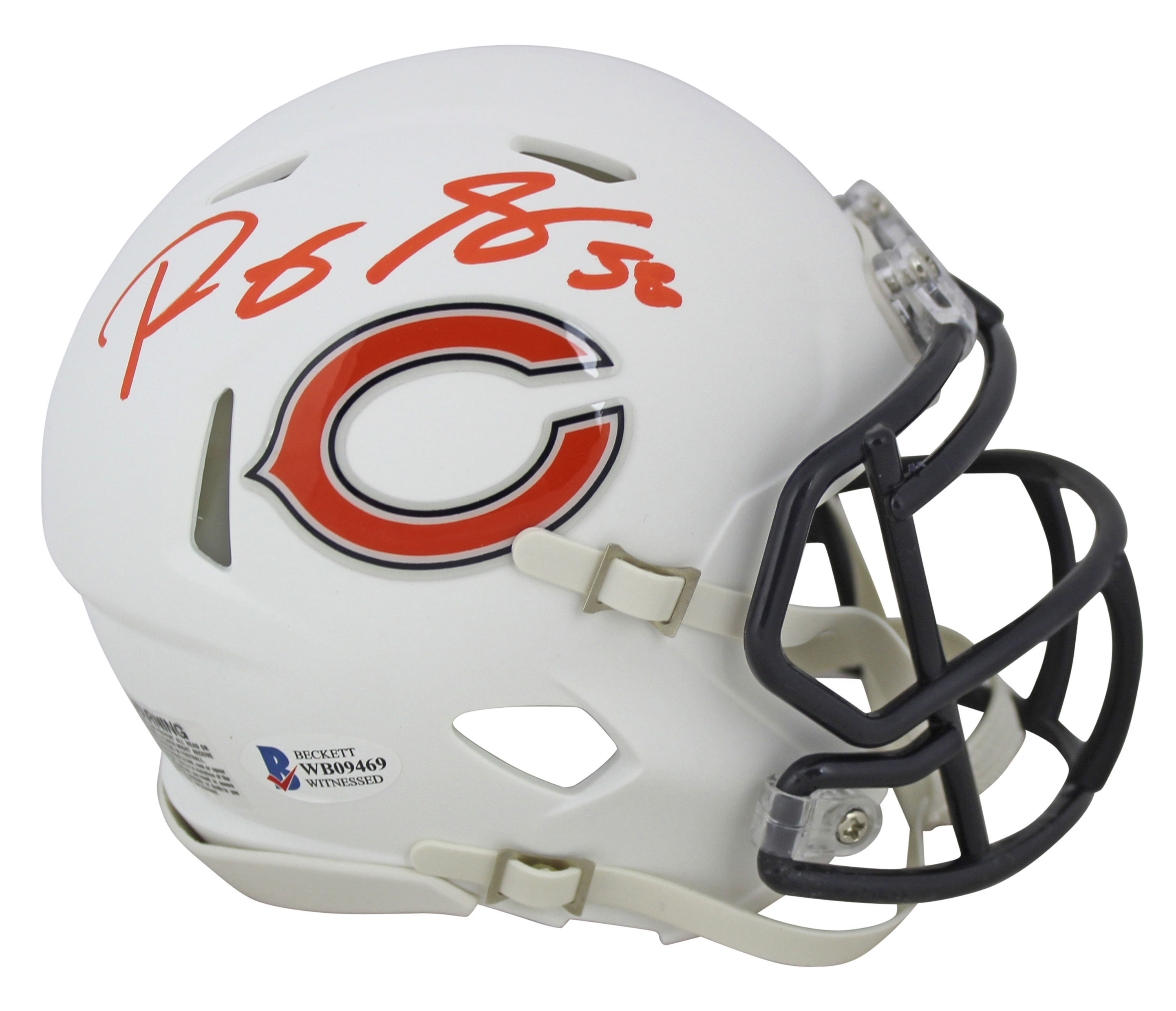 Bears Roquan Smith Authentic Signed Flat White Full Size Speed Rep Helmet BAS