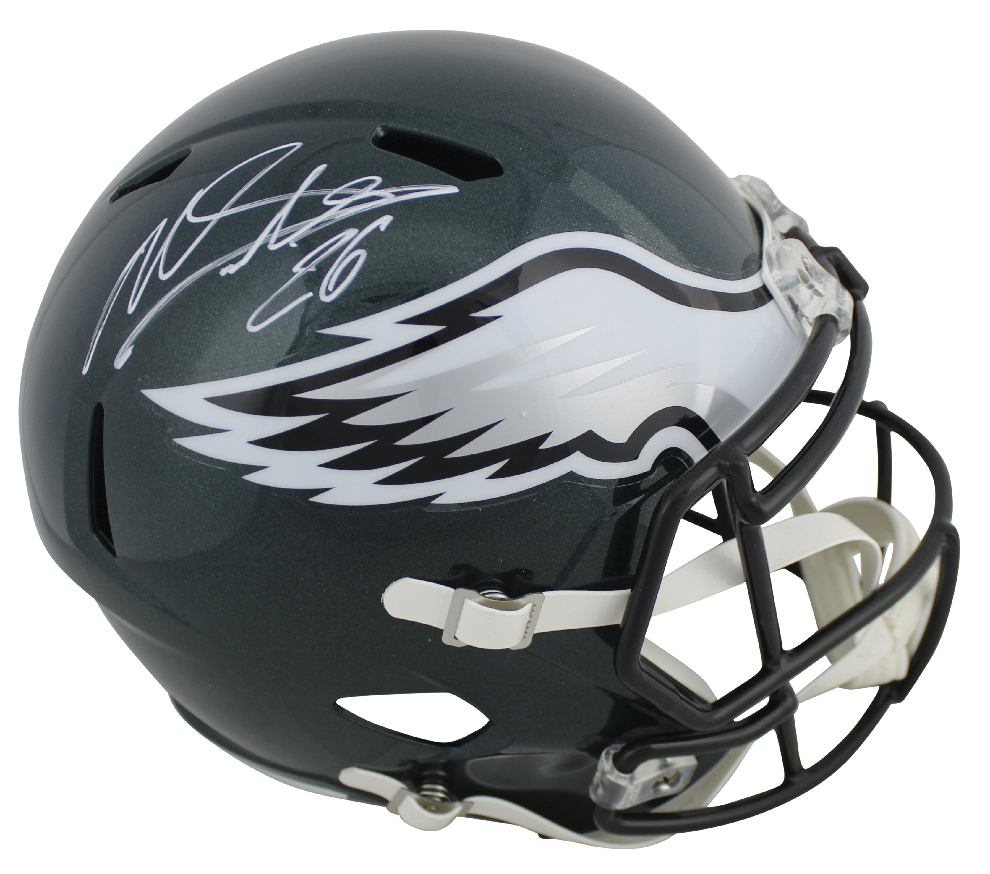 Eagles Miles Sanders Signed Eclipse Full Size Speed Rep Helmet JSA Witness
