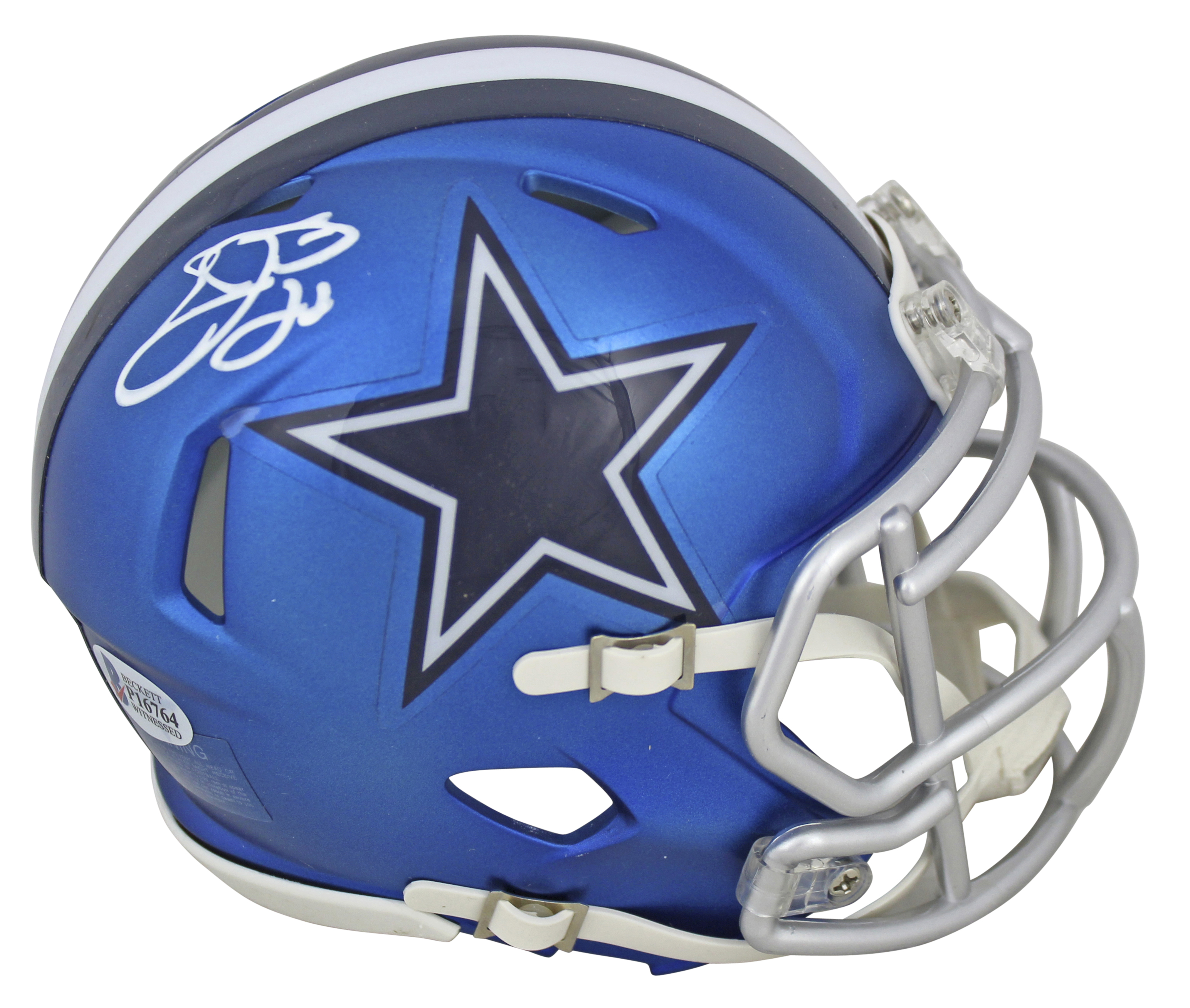 Cowboys Emmitt Authentic Signed Blaze Mini Helmet White Sig. Autographed BAS