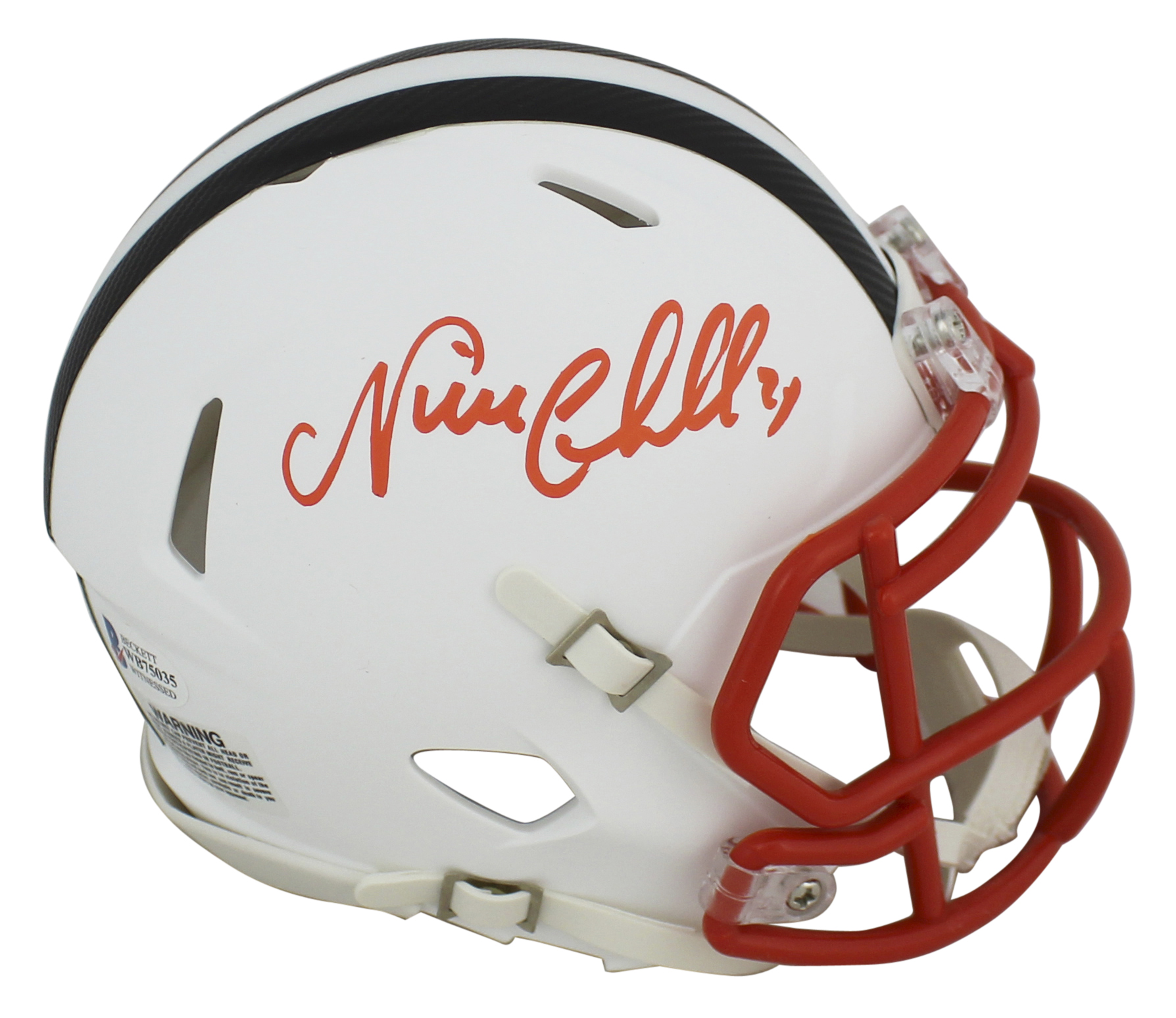 Browns Nick Chubb Authentic Signed Flat White Speed Mini Helmet BAS Witnessed