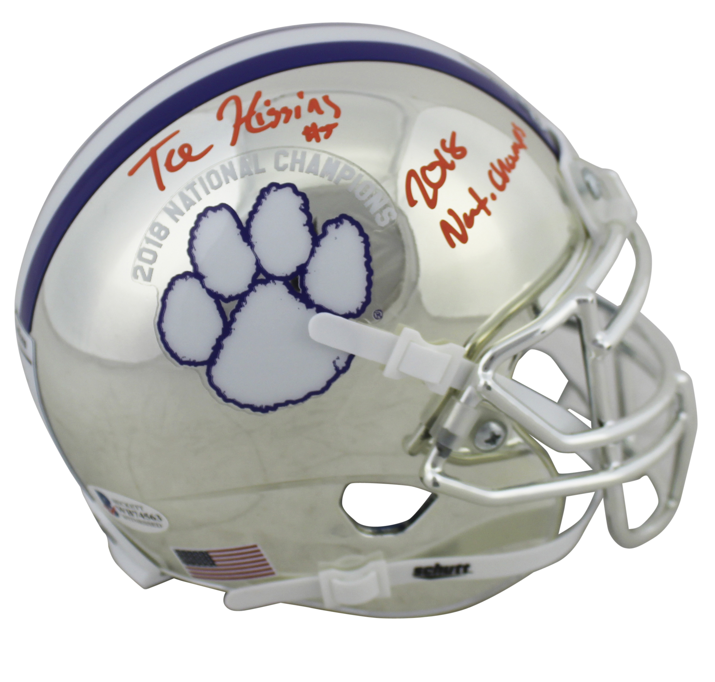 Clemson Tee Higgins "2018 National Champs" Signed Chrome Schutt Mini Helmet BAS