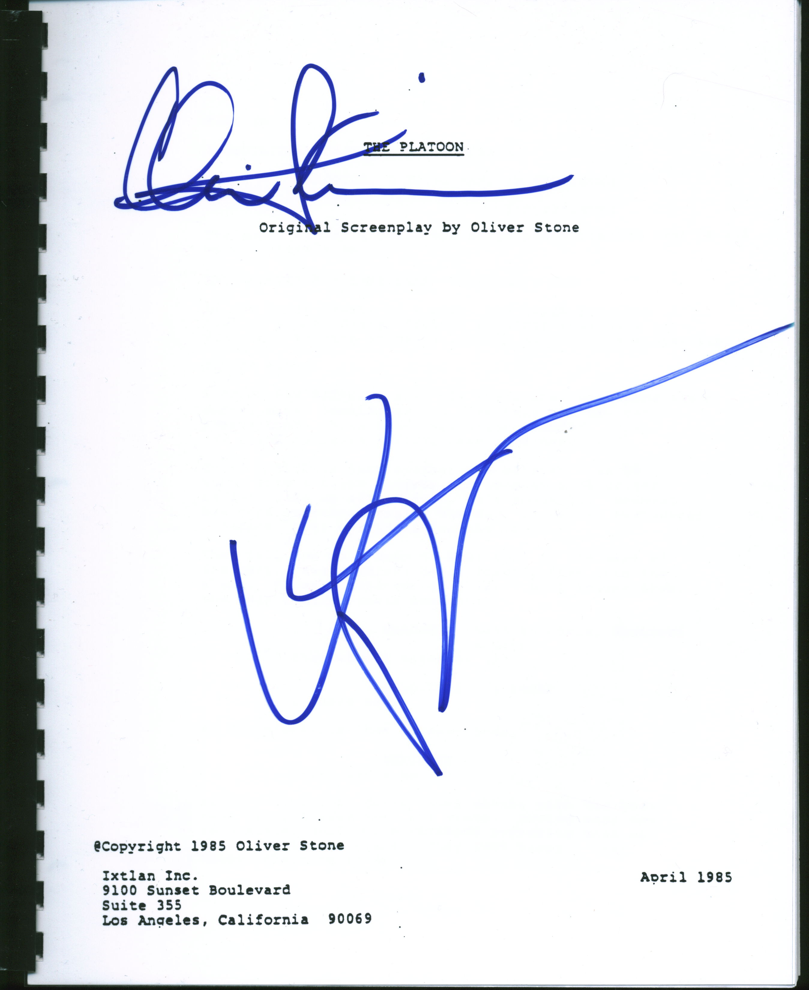 Charlie Sheen & Willem Dafoe Platoon Authentic Signed Movie Script BAS #B71593