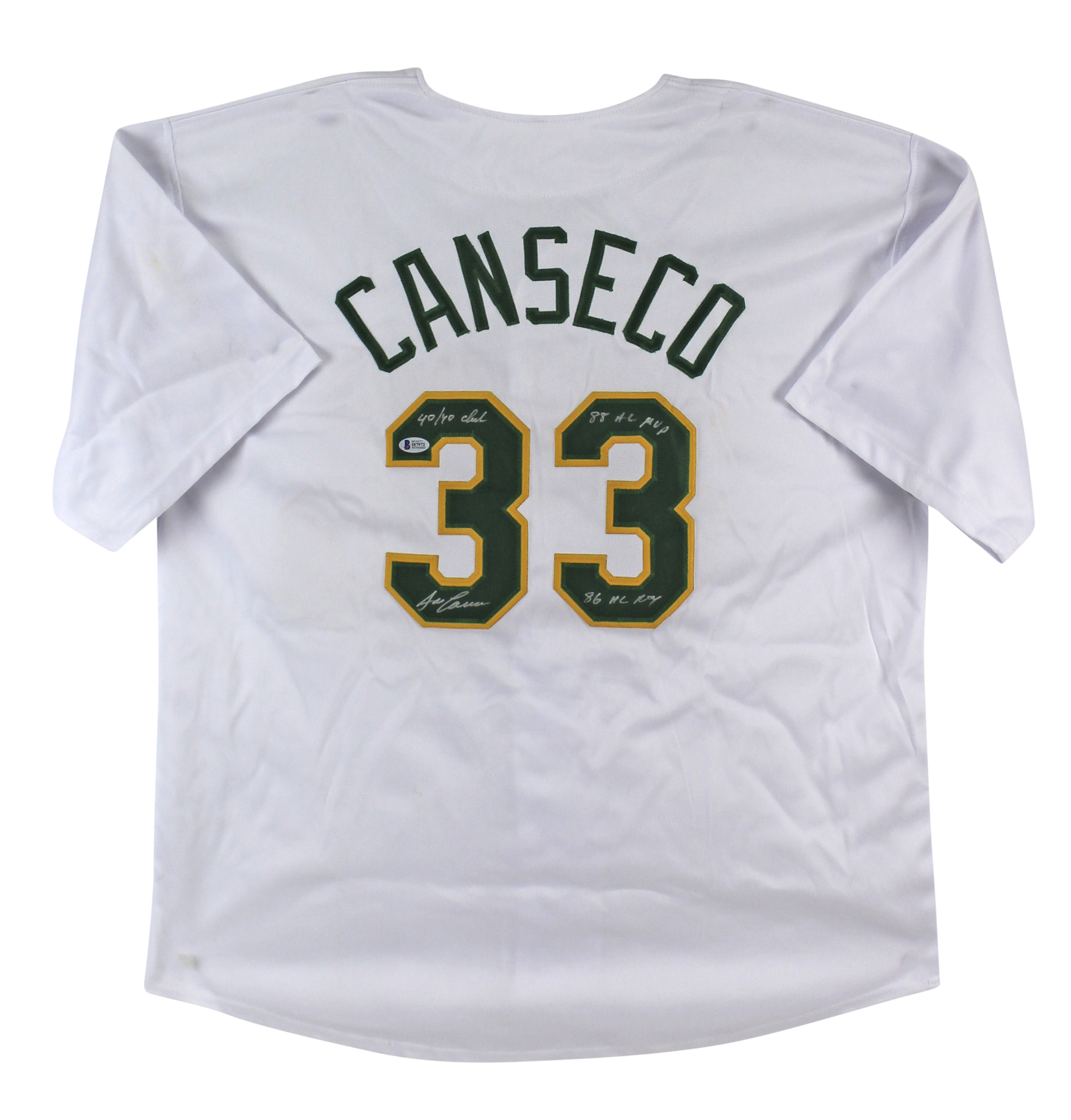 Jose Canseco "3x Inscribed" Signed White Pro Style Jersey BAS Witnessed #I87972