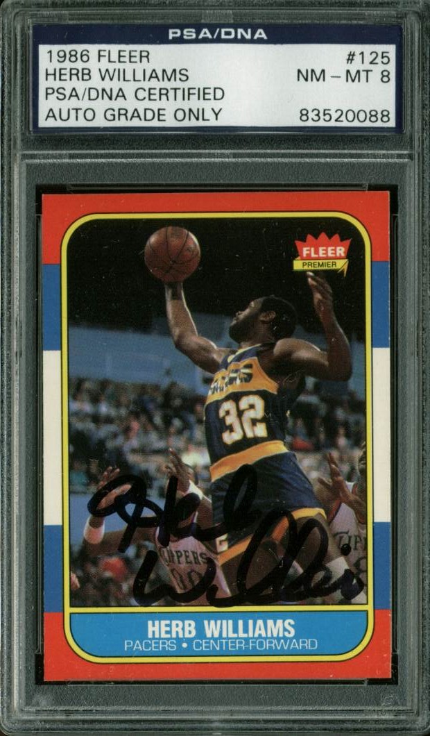 Pacers Herb Williams Signed Card 1986 Fleer #125 Auto Graded NM-MT 8 PSA Slabbed