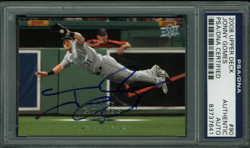Rays Jonny Gomes Authentic Signed Card 2008 Upper Deck #90 PSA/DNA Slabbed