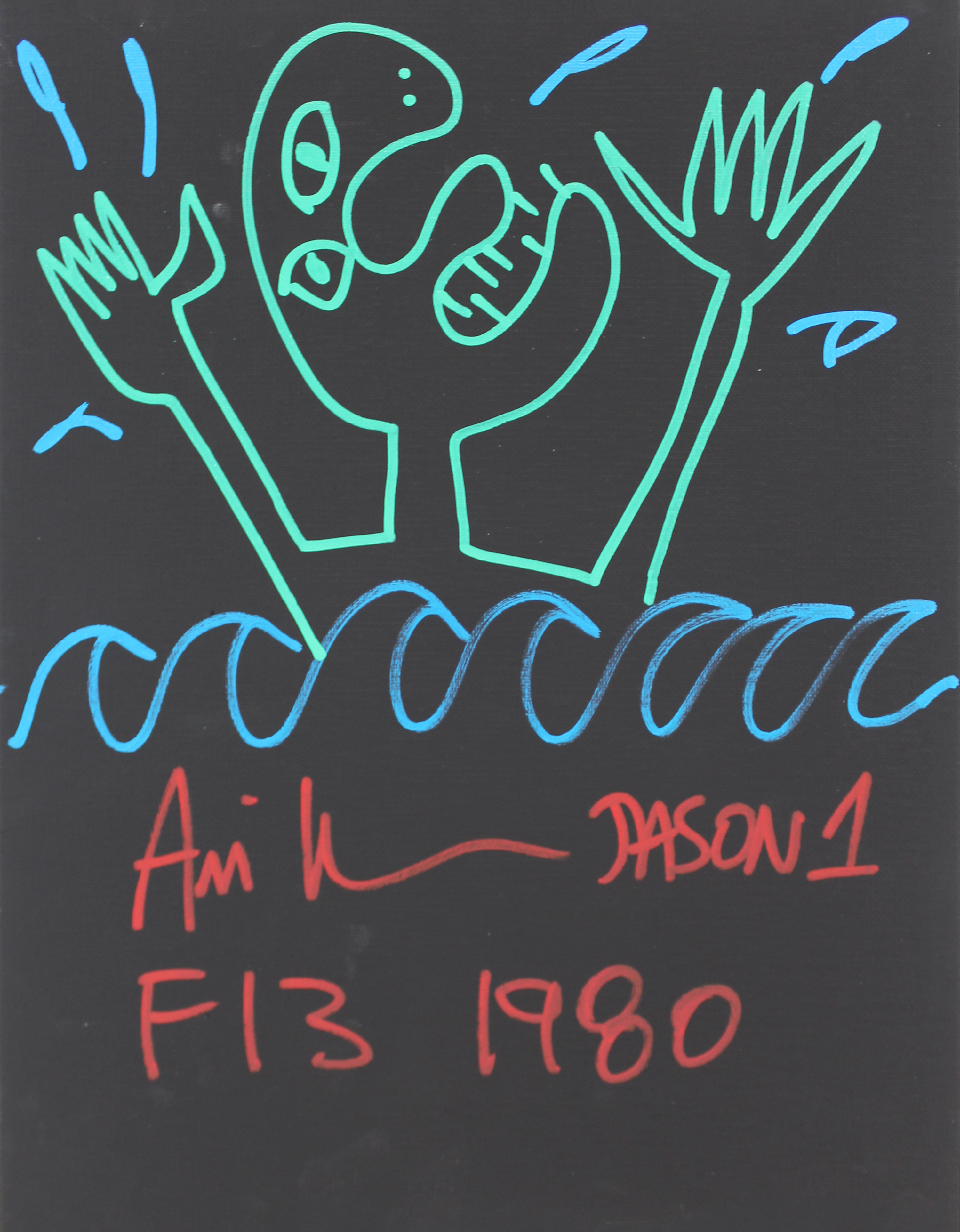 Ari Lehman F13 1980, Jason 1 Signed 11x14 Canvas Hand-Drawn Sketch BAS #WF59871