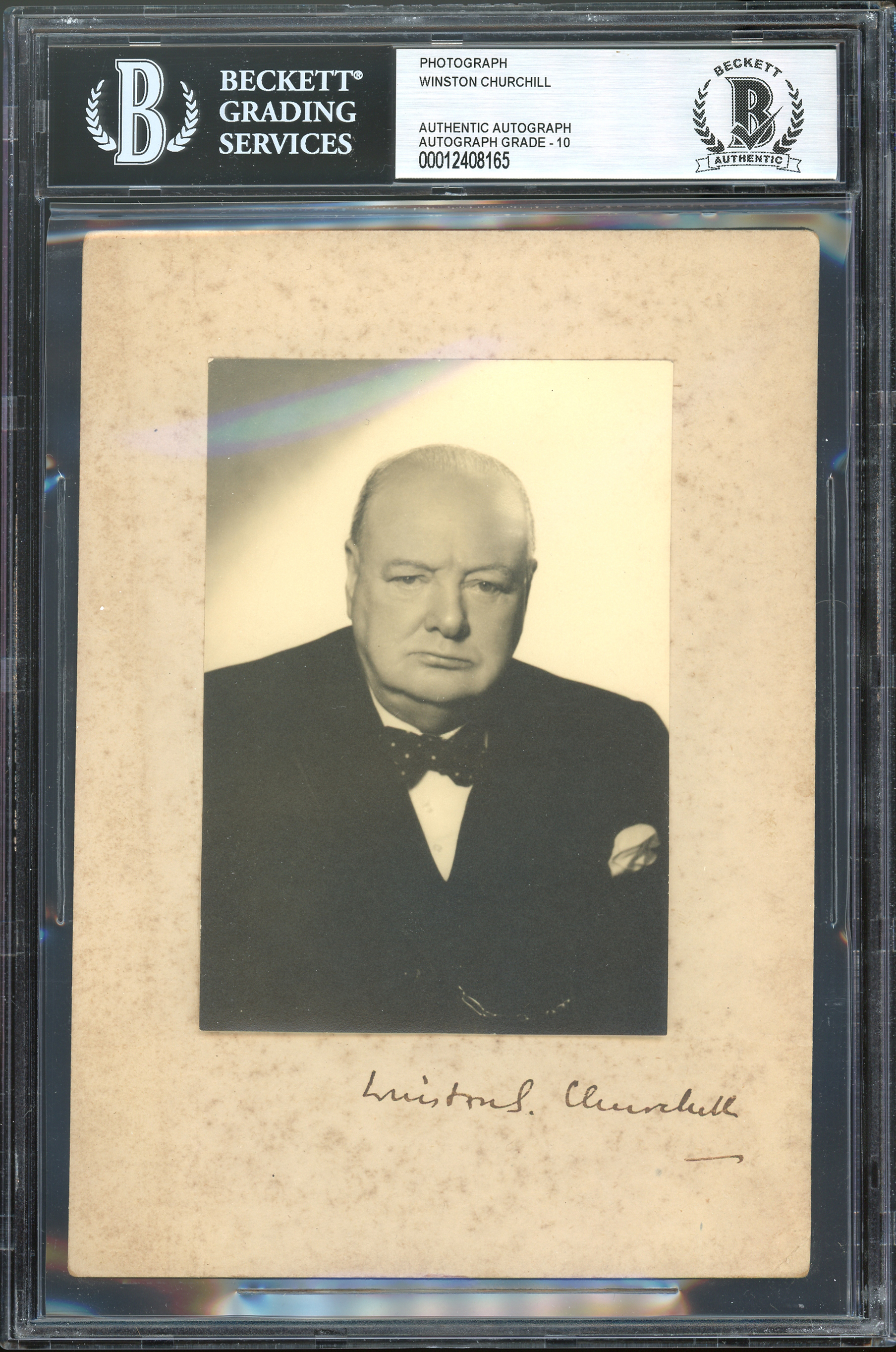 Winston Churchill Authentic Signed Mounted 5x7 Photo Auto Graded 10! BAS Slabbed