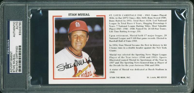 Cardinals Stan Musial Authentic Signed 3.75X6 Advertisement PSA/DNA Slabbed