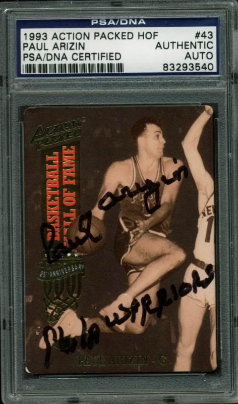 Warriors Paul Arizin Authentic Signed Card 1993 Action Packed HOF PSA Slabbed