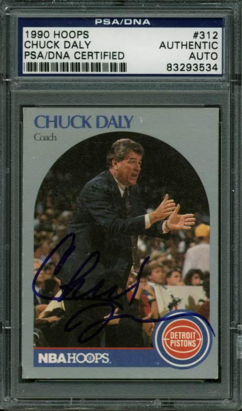 Pistons Chuck Daly Authentic Signed Card 1990 Hoops #312 PSA/DNA Slabbed