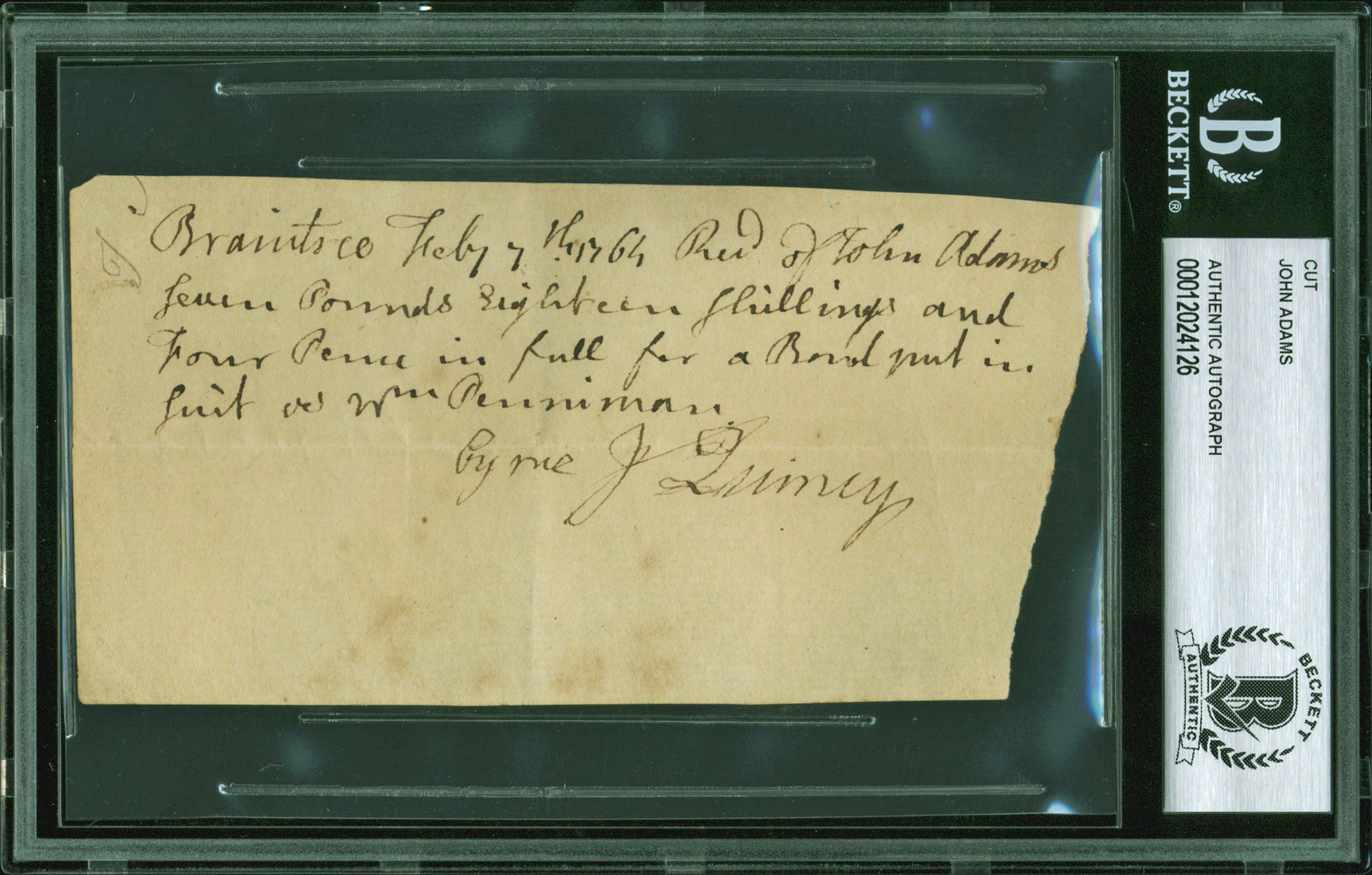 John Adams Authentic Signed 2.75x5.25 Handwritten Document BAS Slabbed