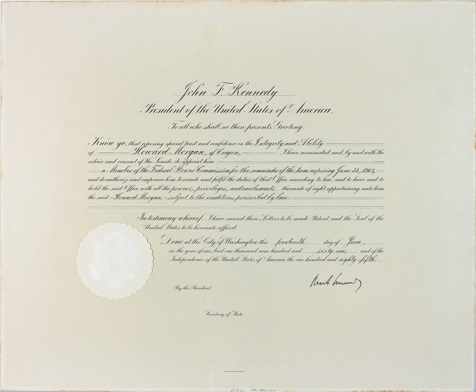 John F. Kennedy Signed 19x23 Federal Power Commission Document BAS #A72306