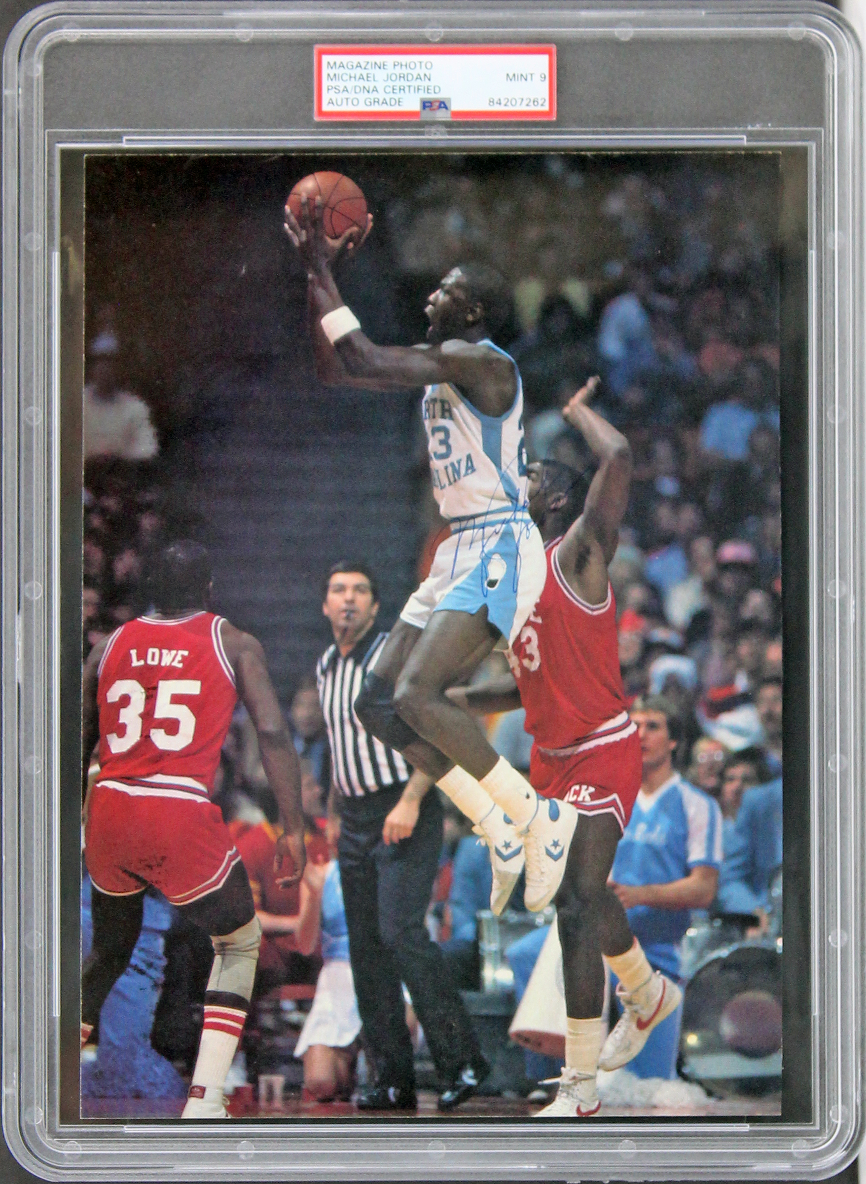 UNC Michael Jordan Signed 8x10.75 Magazine Page Photo Auto Graded 9! PSA Slabbed