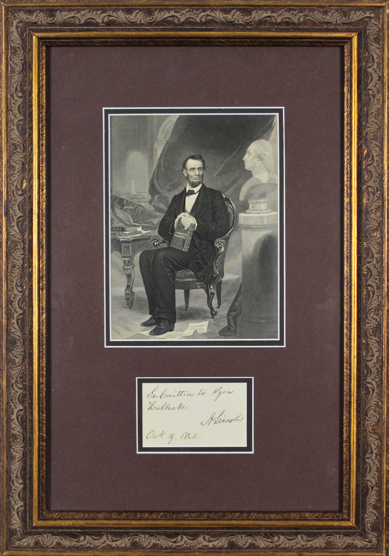 Abraham Lincoln Authentic Signed 1862 2x3.5 Framed Cut Signature BAS #A78896