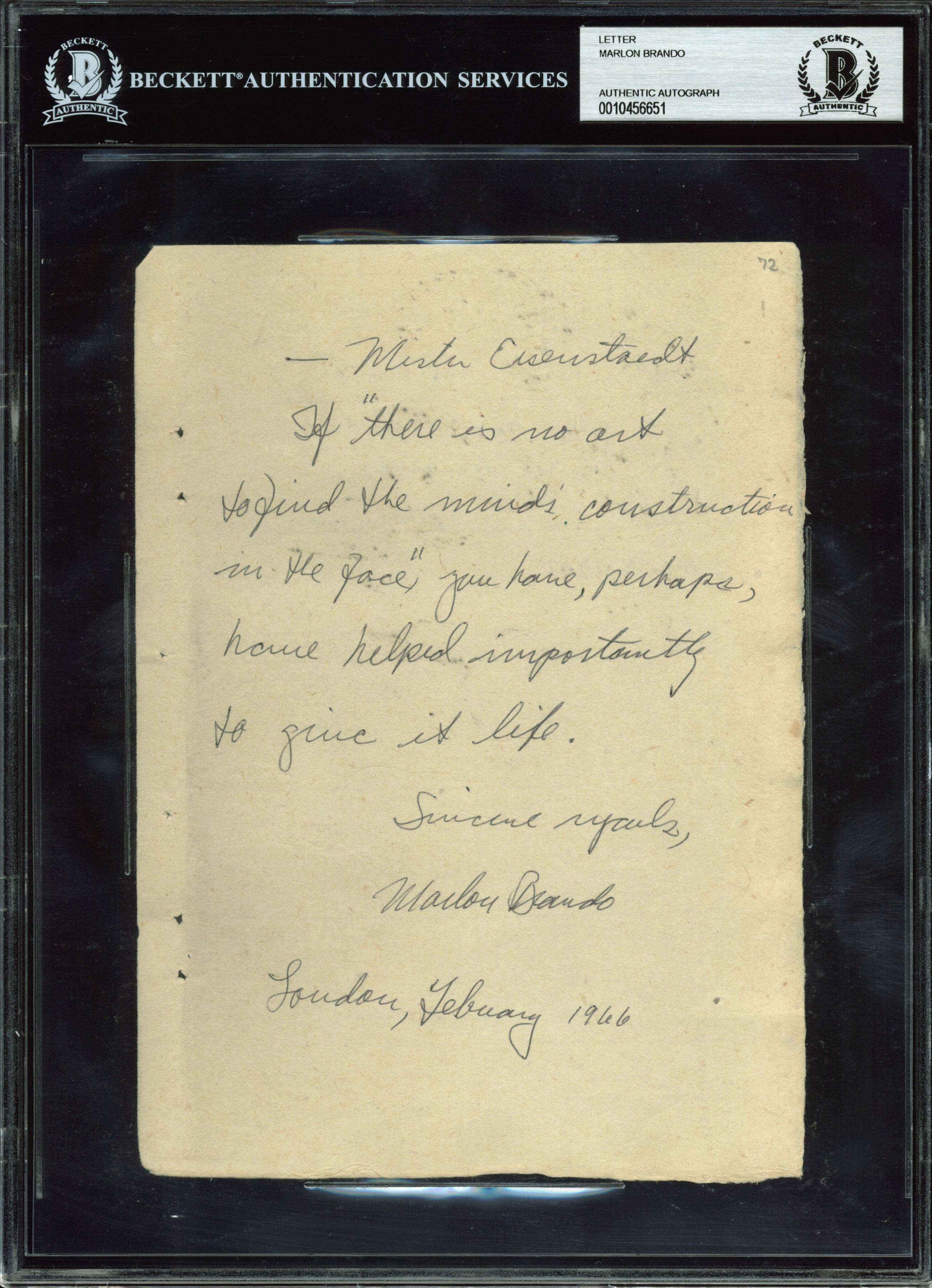 Marlon Brando Signed 6.25x8.75 1966 Handwritten Shakespeare Quote BAS Slabbed