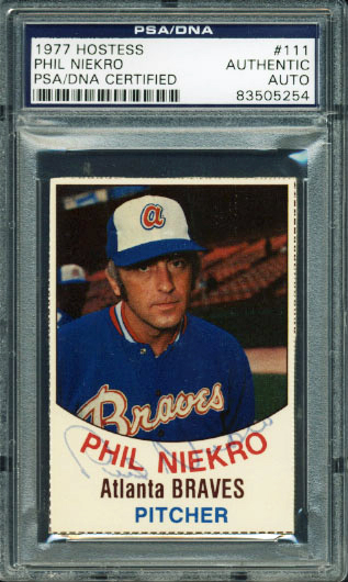 Braves Phil Niekro Authentic Signed Card 1977 Hostess #111 PSA/DNA Slabbed