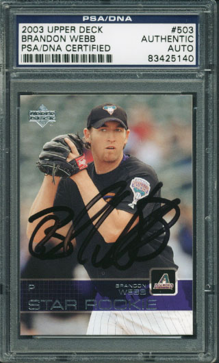 D-Backs Brandon Webb Authentic Signed Card 2003 Ud Rookie #503 PSA/DNA Slabbed