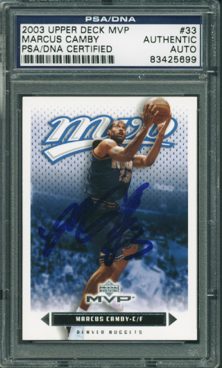 Nuggets Marcus Camby Authentic Signed Card 2003 Upper Deck MVP #33 PSA Slabbed