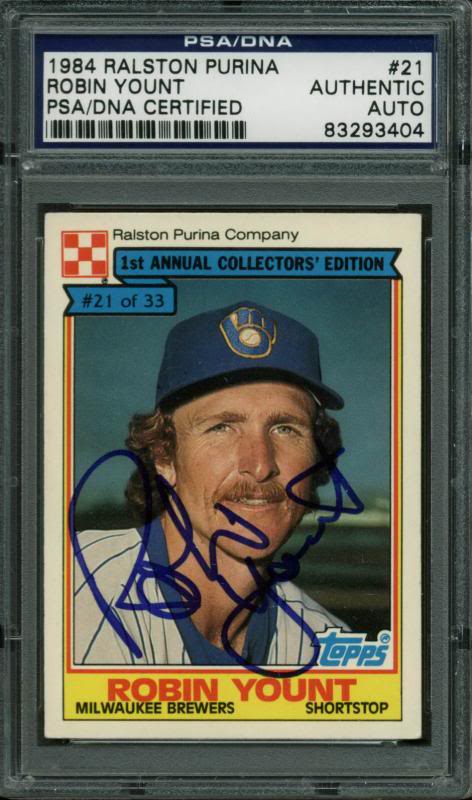 Brewers Robin Yount Authentic Signed Card 1984 Ralston Purina PSA/DNA Slabbed