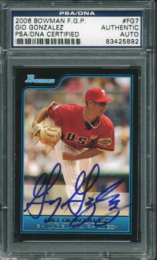 Gio Gonzalez Authentic Signed Card 2006 Bowman Fgp Rookie #Fg7 PSA/DNA Slabbed