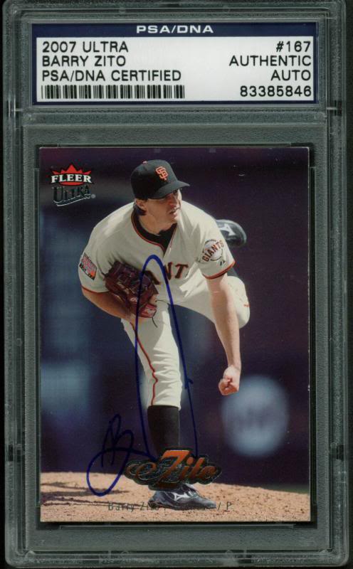 Giants Barry Zito Authentic Signed Card 2007 Ultra #167 PSA/DNA Slabbed