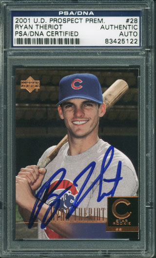 Cubs Ryan Theriot Authentic Signed Card 2001 Ud Rookie #28 PSA/DNA Slabbed