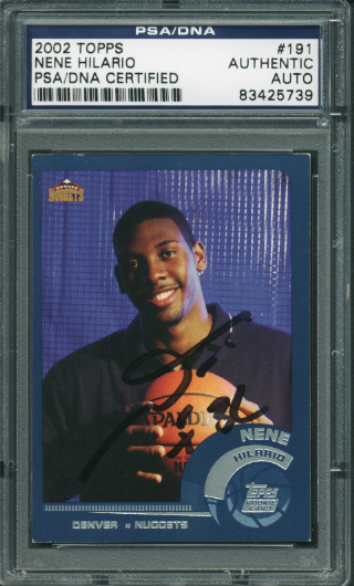 Nuggets Nene Hilario Authentic Signed Card 2002 Topps Rookie PSA/DNA Slabbed