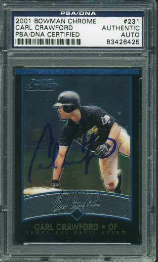 Rays Carl Crawford Authentic Signed Card 2001 Bowman Chrome #231 PSA/DNA Slabbed