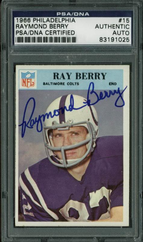 Colts Raymond Berry Authentic Signed Card 1966 Philadelphia #15 PSA/DNA Slabbed