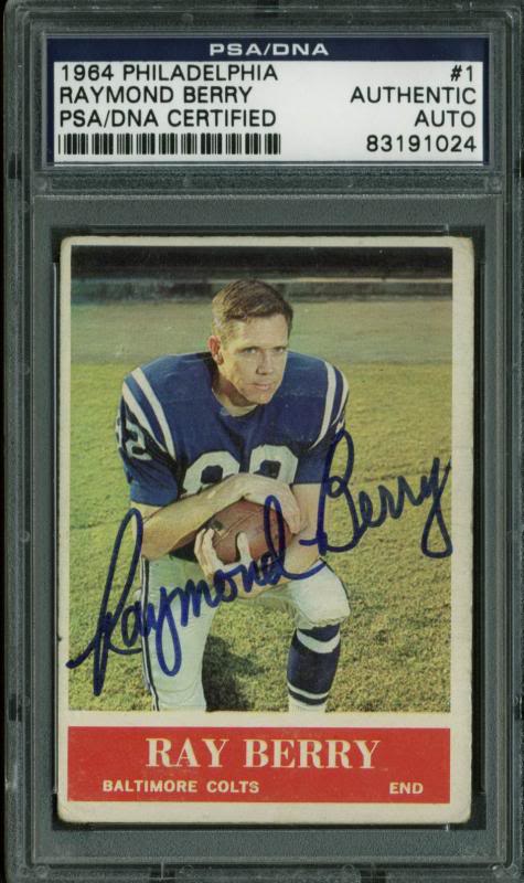 Colts Raymond Berry Authentic Signed Card 1964 Philadelphia #1 PSA/DNA Slabbed