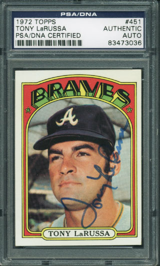 Braves Tony Larussa Authentic Signed Card 1972 Topps #451 PSA/DNA Slabbed
