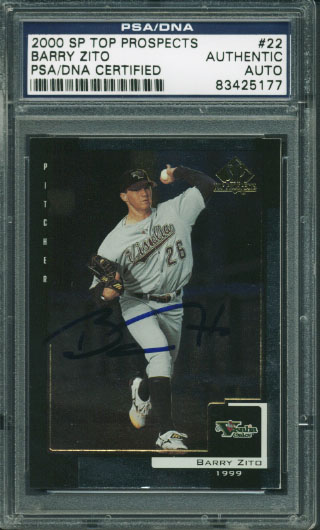Barry Zito Authentic Signed Card 2000 Sp Prospects Rookie #22 PSA/DNA Slabbed