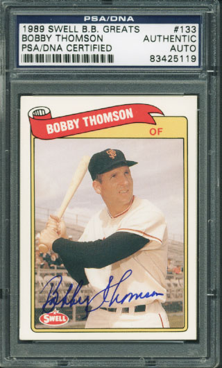 Giants Bobby Thomson Authentic Signed Card 1989 Swell #133 PSA/DNA Slabbed