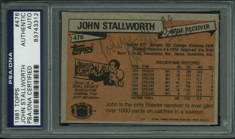 Steelers John Stallworth Authentic Signed Card 1981 Topps #476 PSA/DNA Slabbed