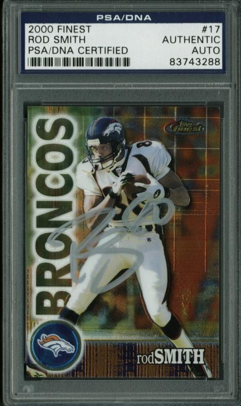 Broncos Rod Smith Authentic Signed Card 2000 Finest #17 PSA/DNA Slabbed