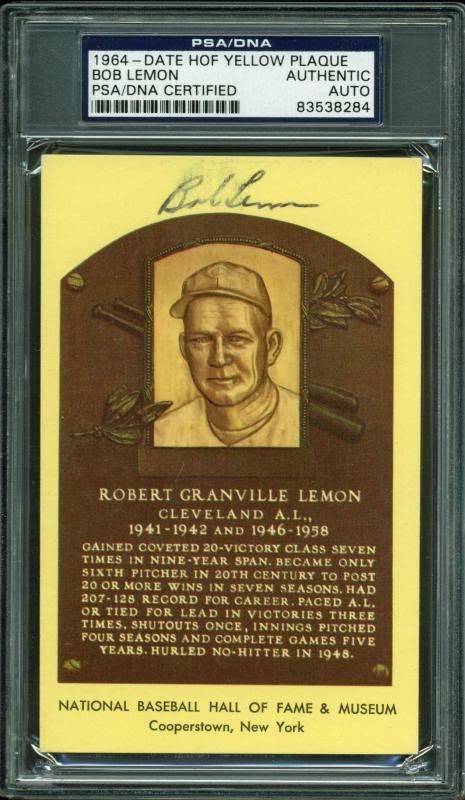 Indians Bob Lemon Authentic Signed HOF Plaque Postcard PSA/DNA Slabbed #83538284