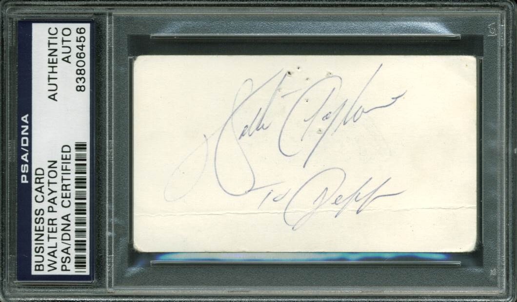 Bears Walter Payton Authentic Signed 2x3.5 Business Card PSA/DNA Slabbed