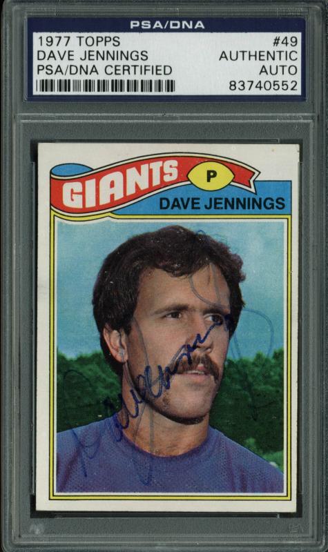 Giants Dave Jennings Authentic Signed Card 1977 Topps #49 PSA/DNA Slabbed