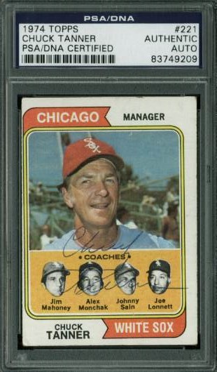 White Sox Chuck Tanner Authentic Signed Card 1974 Topps #221 PSA/DNA Slabbed