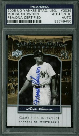 Yankees Moose Skowron Signed Card 2008 Ud Yankee Stad. Leg. #3036 PSA Slabbed
