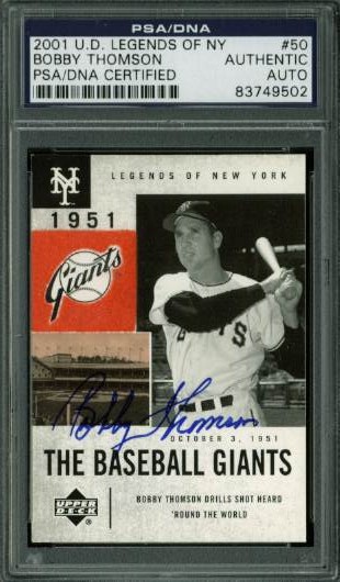 Giants Bobby Thomson Signed Card 2001 U.D. Legends Of Ny #50 PSA/DNA Slabbed